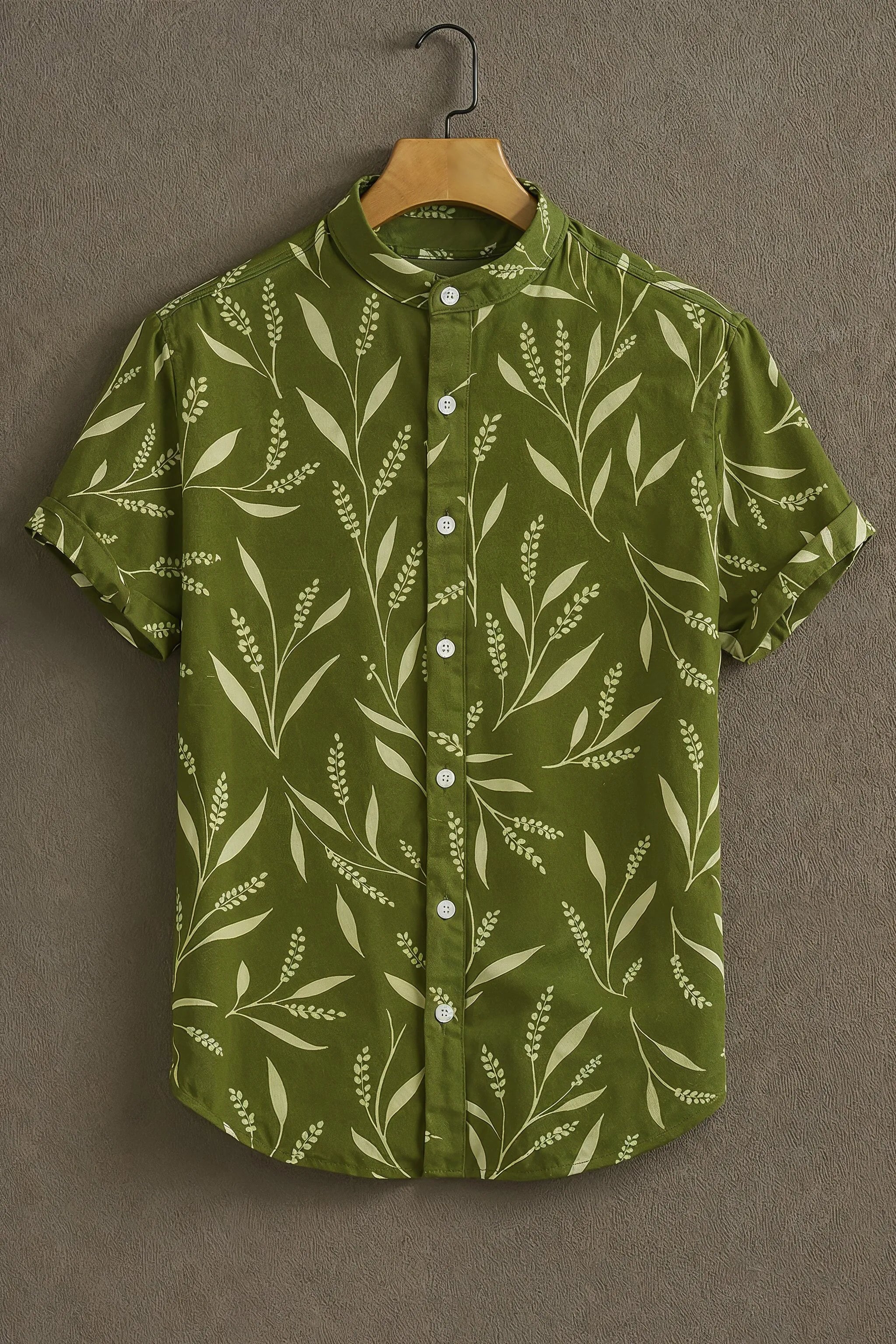 Refresh your wardrobe with this Men’s Green Casual Shirt featuring an elegant leaf print. The nature-inspired botanical pattern in soft cream tones pairs beautifully with the earthy green base, giving the shirt a clean, modern, and refreshing vibe.